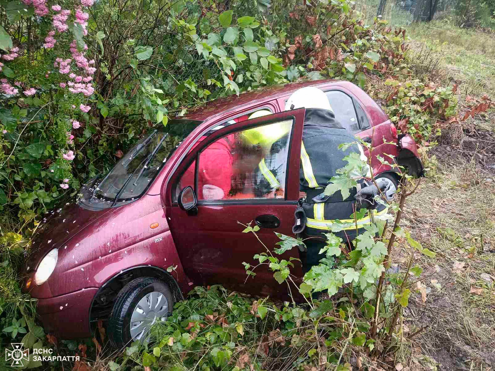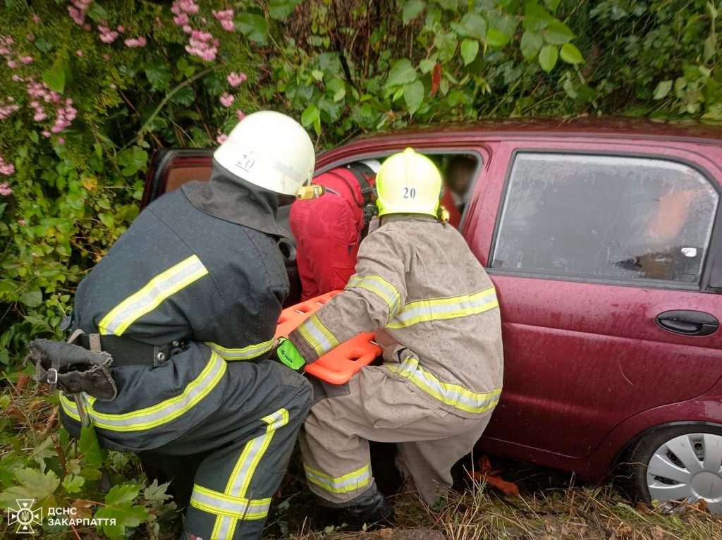 Аварія у Рахові: водій Daewoo Matiz з’їхав у кювет, є постраждалі (ФОТО)
