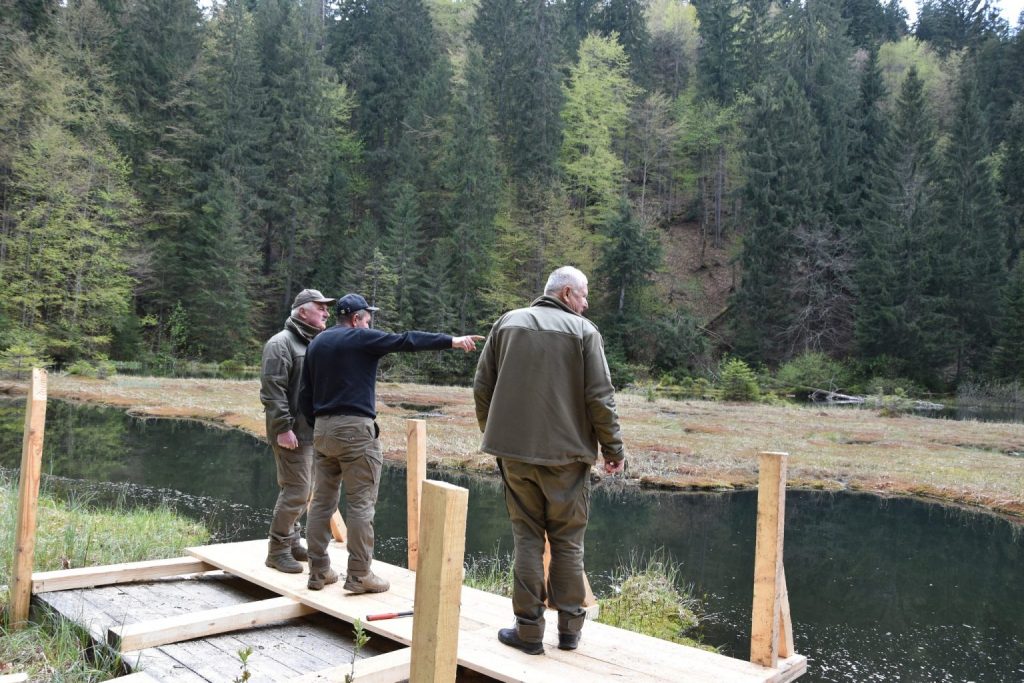 Важливим етапом робіт стало облаштування дерев’яного настилу загальною довжиною 90 метрів у болотистих місцях навколо озера. Це рішення не лише забезпечило зручний та безпечний прохід для туристів, але й допомогло зберегти унікальну флору та фауну прибережної зони, мінімізуючи вплив людини на екосистему. Окрім згаданих об’єктів, було проведено й інші роботи з благоустрою території: облаштовано екологічну стежку, очищено територію від сміття та сухостою, передбачено встановлення інформаційних стендів з цікавими фактами про озеро та його мешканців.