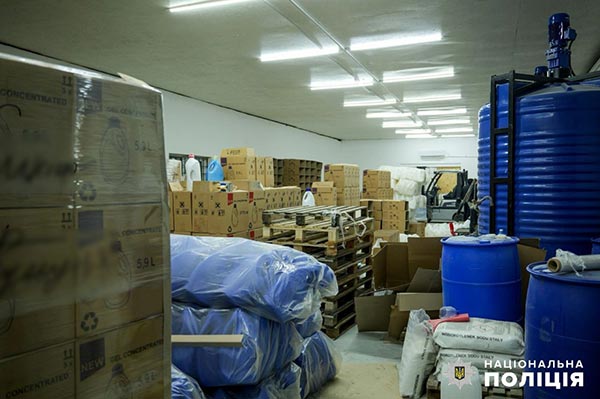 Під час обшуку в підпільному цеху поліція вилучила майже 25 тонн рідини, виробниче обладнання, 12 тонн готової продукції, 800 літрів концентрату, поліграфічну продукцію та тару для фальсифікату.