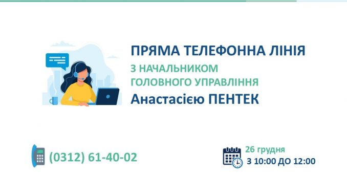 На запитання громадян відповідатиме начальниця Головного управління Анастасія Пентек.