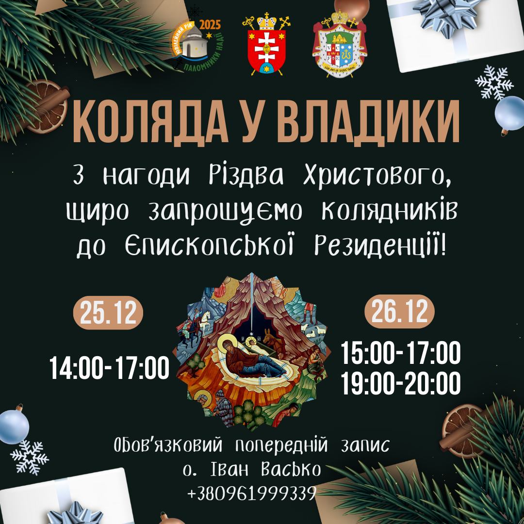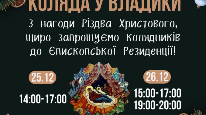 Мукачівська греко-католицька єпархія запрошує колядників до Єпископської Резиденції колядувати у владики з нагоди Різдва Христового. Заколядувати можна 25 та 26 грудня за попереднім записом.