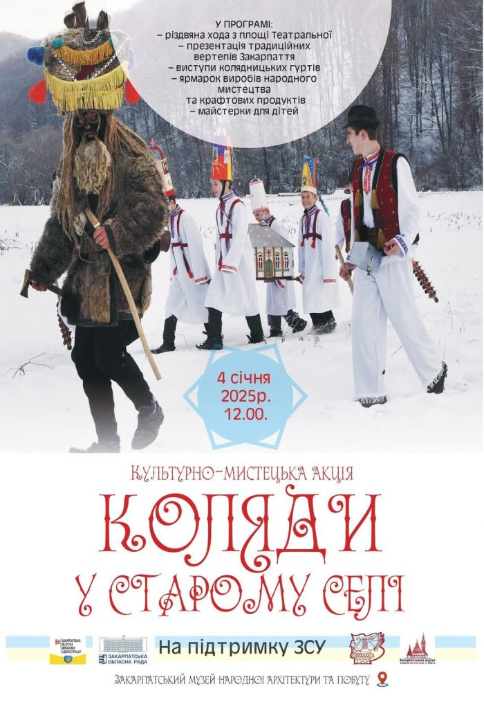 У суботу, 4 січня, в Ужгороді відбудеться один із найяскравіших зимових заходів краю — етнофестиваль «Коляди у старому селі». На території Закарпатського музею народної архітектури та побуту зберуться найкращі колядницькі колективи та автентичні бетлегеми з усієї області, щоб відтворити живу різдвяну традицію.