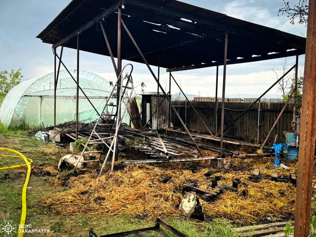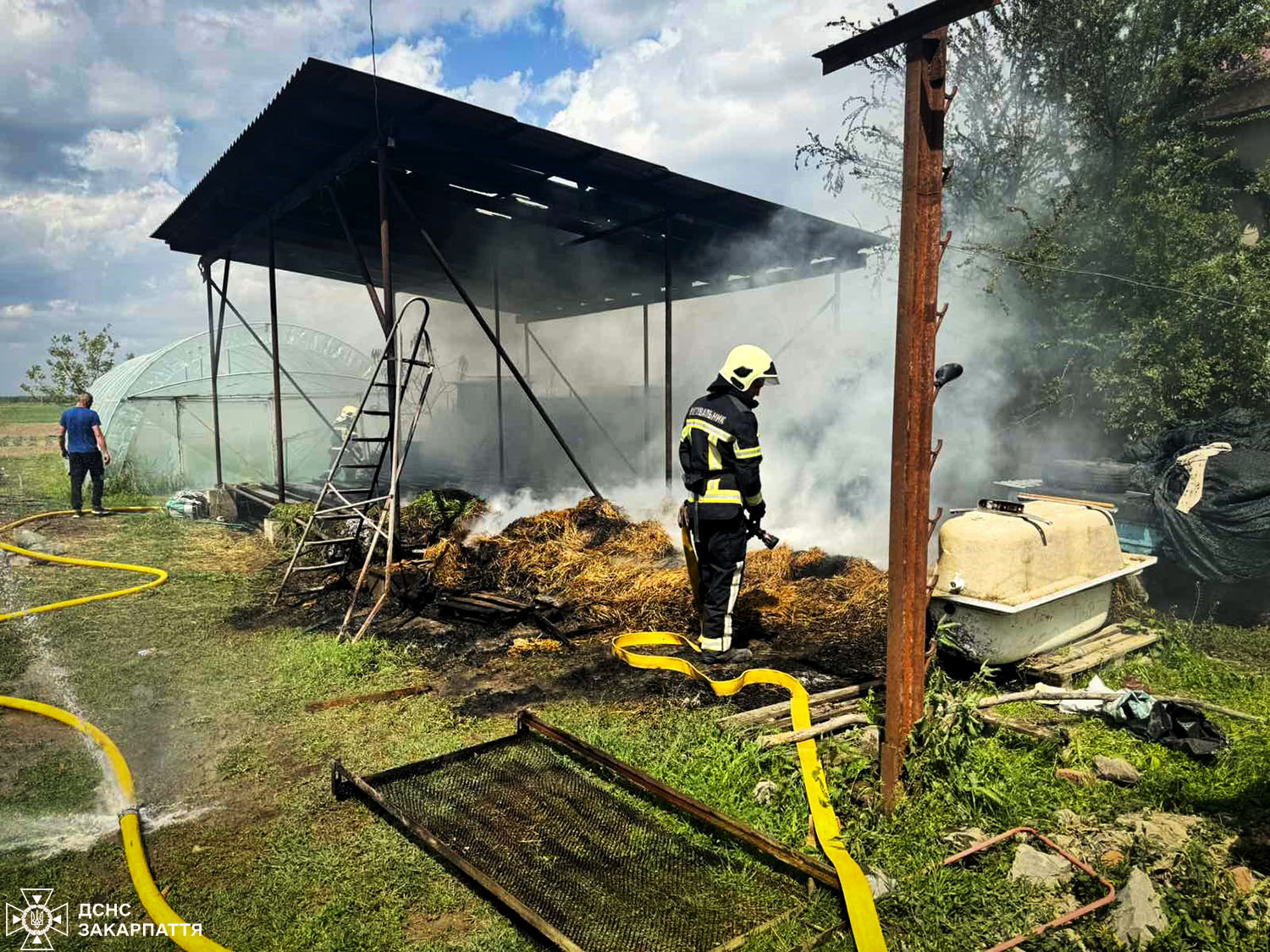У селі Нове Село Берегівського району сталася пожежа, де зайнялася господарська споруда на вулиці Спортивній. Площа займання становила 30 квадратних метрів, проте основною складністю стало гасіння трьох тонн сіна, що тліло всередині будівлі. Для ліквідації пожежі рятувальникам з Вилока та Виноградова довелося вручну перебирати та проливати кожен шар сіна, щоб дістатися до прихованих осередків вогню.