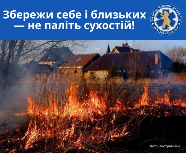 Рятувальники та медики вкотре закликають: не спалюйте суху траву!