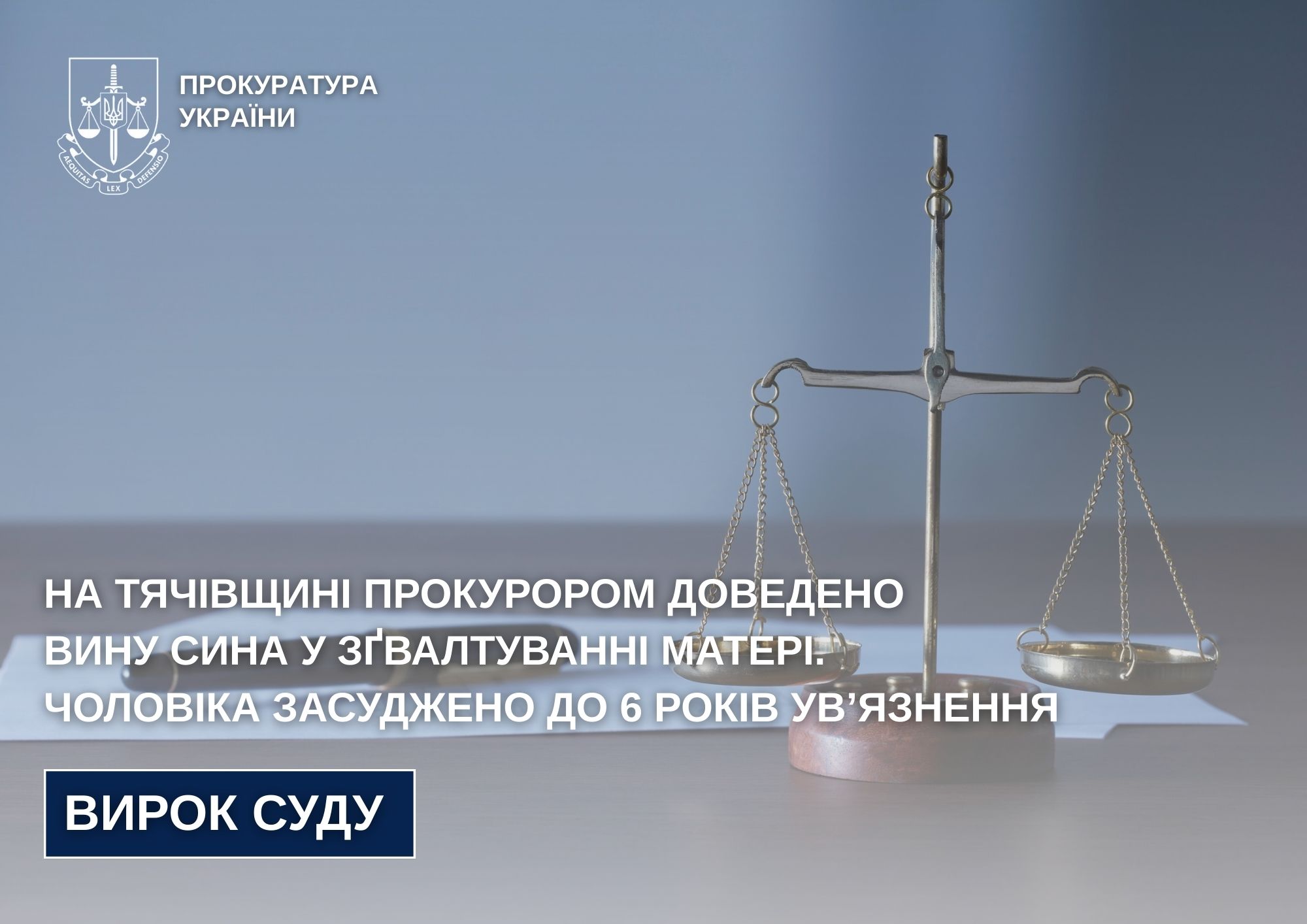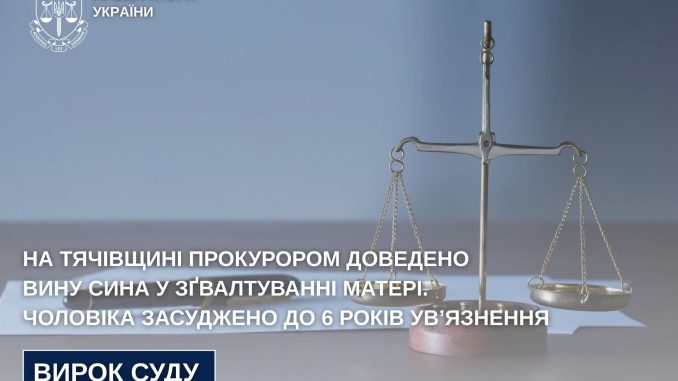 Тячівська окружна прокуратура довела вину 31-річного чоловіка у зґвалтуванні власної матері. Тячівський районний суд визнав його винним і засудив до 6 років позбавлення волі.