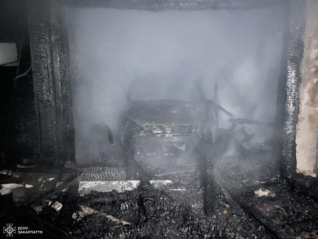 На Тячівщині вогнеборці ліквідували масштабну пожежу, в якій згорів гараж та авто (ФОТО)