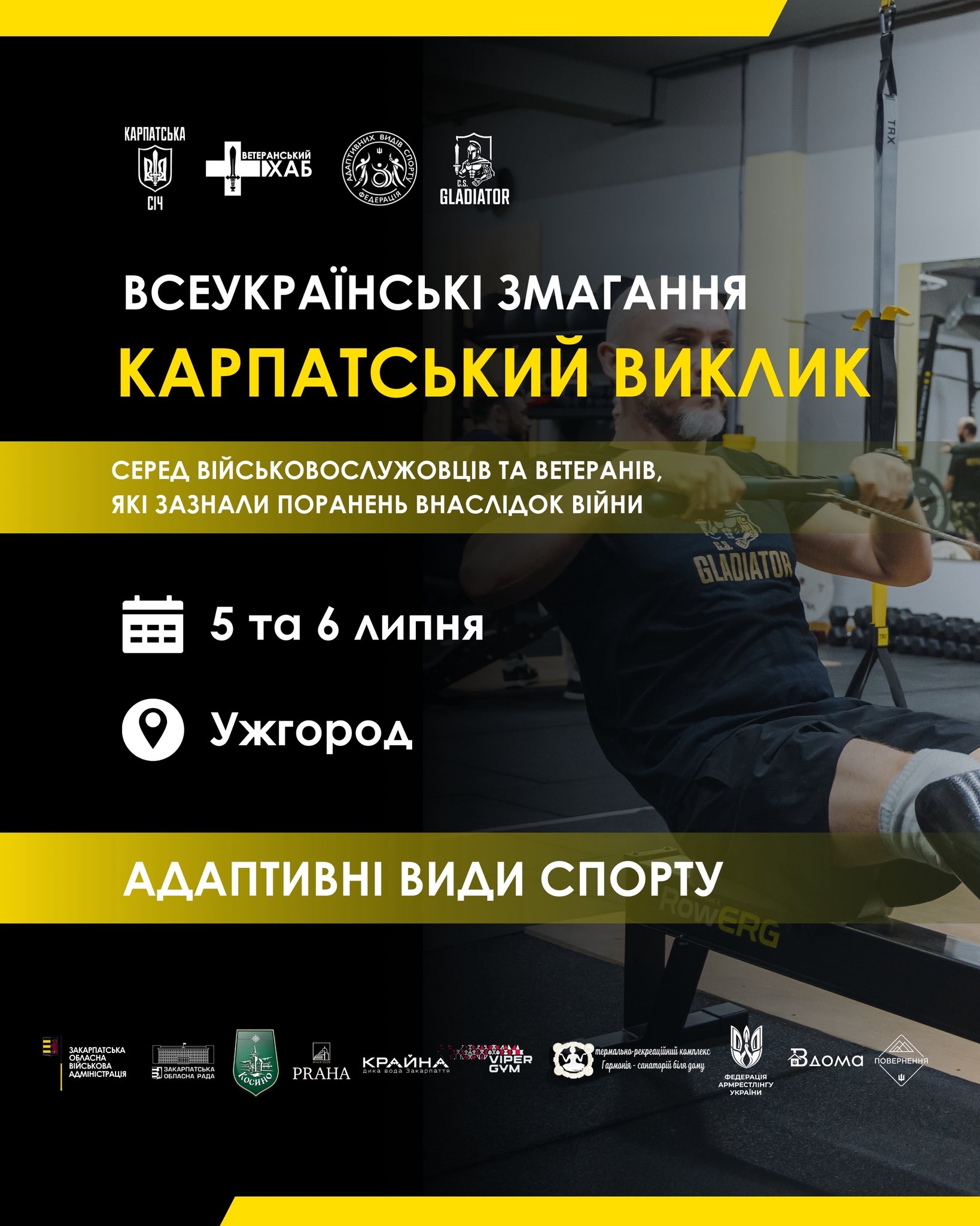 Вперше на Закарпатті відбудуться масштабні Всеукраїнські змагання з адаптивних видів спорту серед поранених бійців і ветеранів під назвою «Карпатський Виклик». Турнір пройде 5–6 липня в Ужгороді, де учасники випробовуватимуть свої сили у семи дисциплінах.