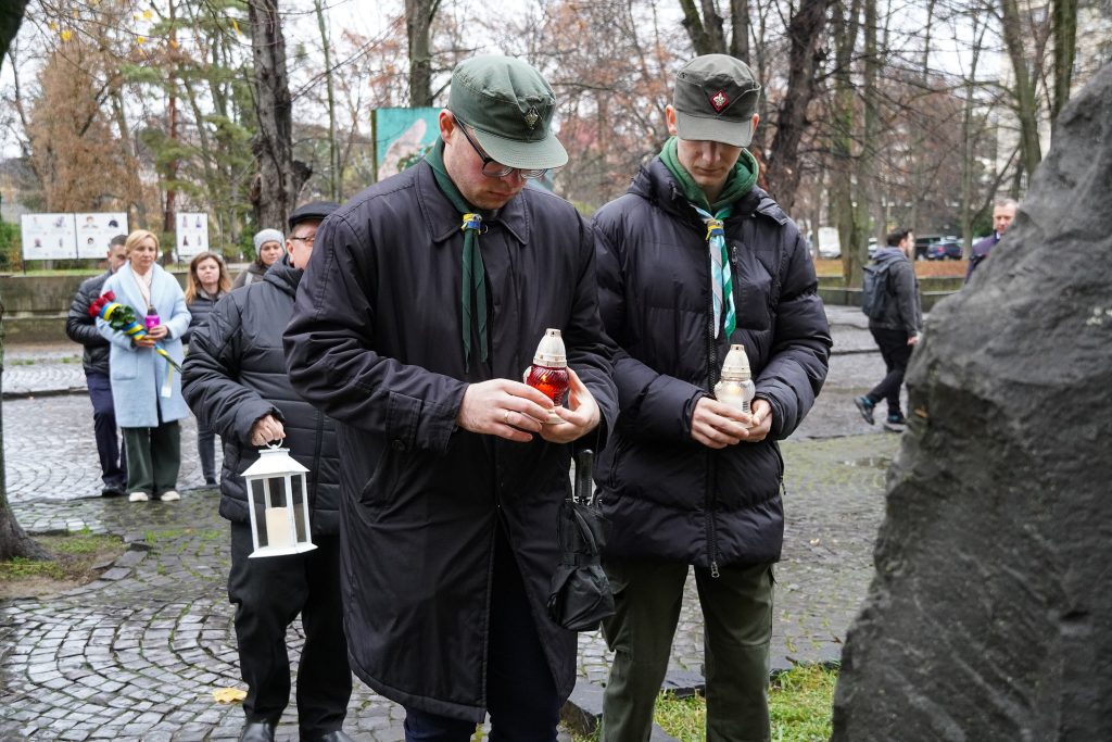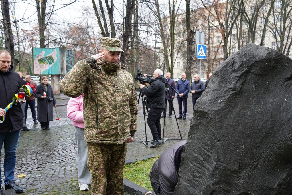 В Ужгороді на площі Народній відбулася церемонія вшанування: керівництво області й міста, військові, пластуни та представники громадськості поклали квіти і запалили лампадки до пам’ятного знаку борцям за волю й незалежність.