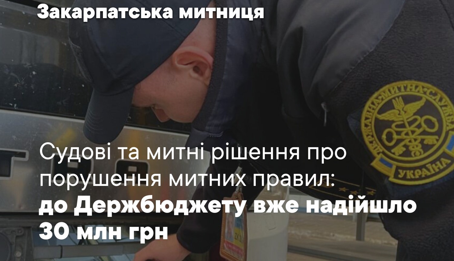 Закарпатська митниця підбила підсумки боротьби з адміністративними порушеннями за 2025 рік. За цей період державна скарбниця поповнилася на 32,7 млн грн завдяки стягненням та реалізації конфіскату.