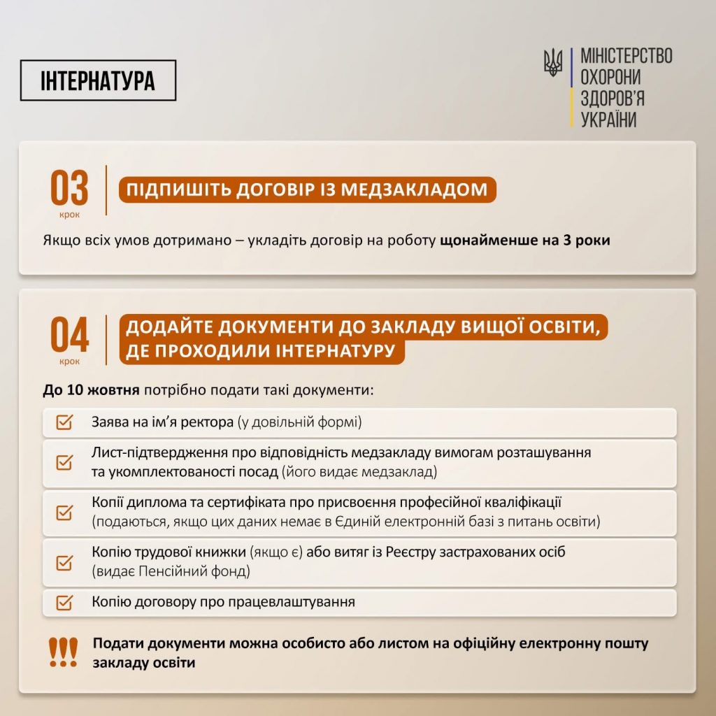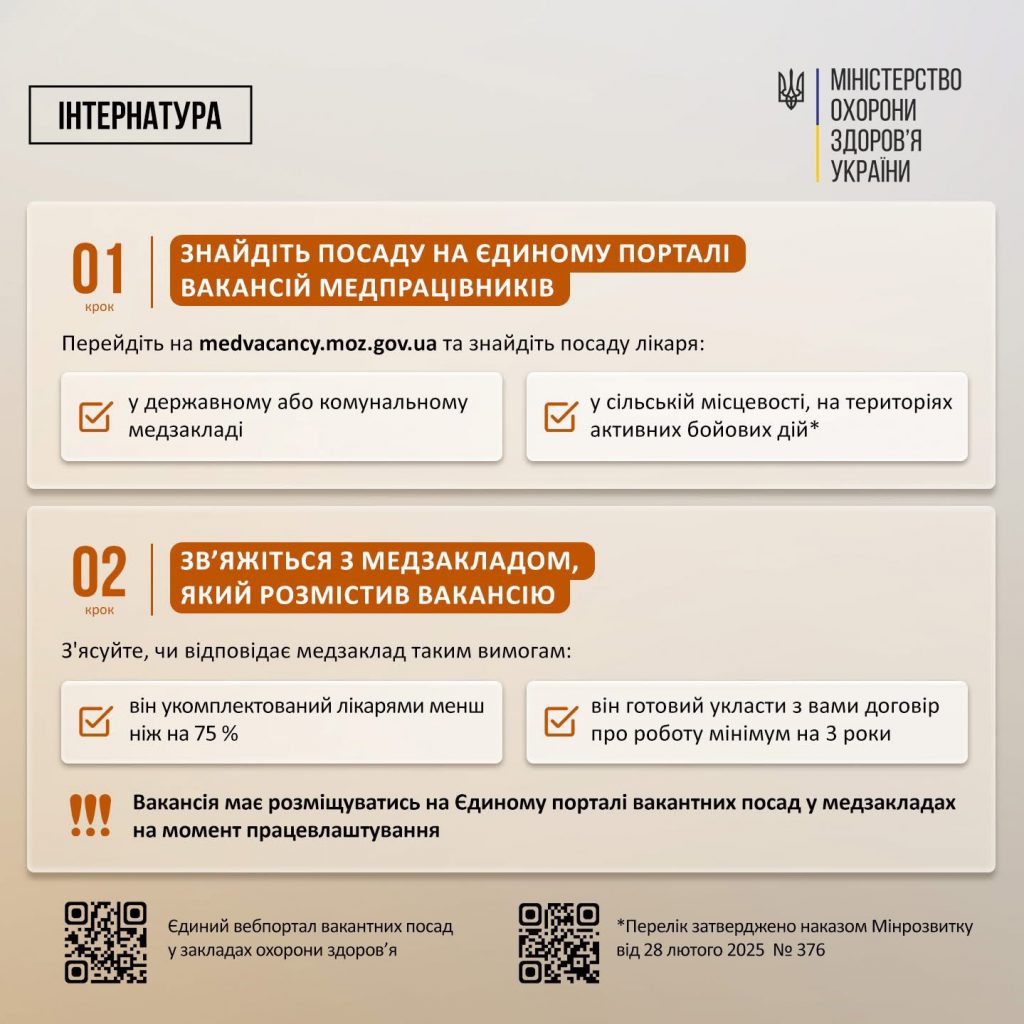 Помощь оказывается в период действия военного положения тем врачам, которые после завершения интернатуры заключили договор на работу сроком не менее трех лет в учреждениях государственной или коммунальной формы собственности, которые расположены: