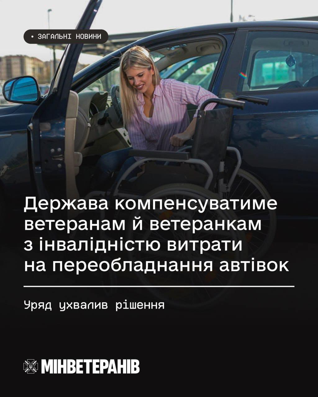 Правительство Украины приняло постановление, вводящее механизм денежной компенсации для ветеранов и ветеранок с инвалидностью, которые нуждаются в переоборудовании собственных автомобилей для адаптации под свои нужды.