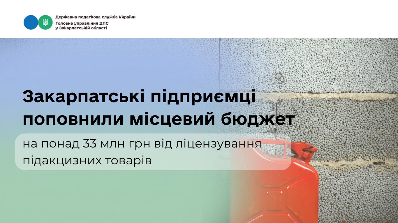 За 10 месяцев 2025 года предприниматели Закарпатья обеспечили поступление в местный бюджет в сумме почти 33,3 млн. грн. от лицензирования торговли подакцизными товарами (алкоголем, табаком и горючим).