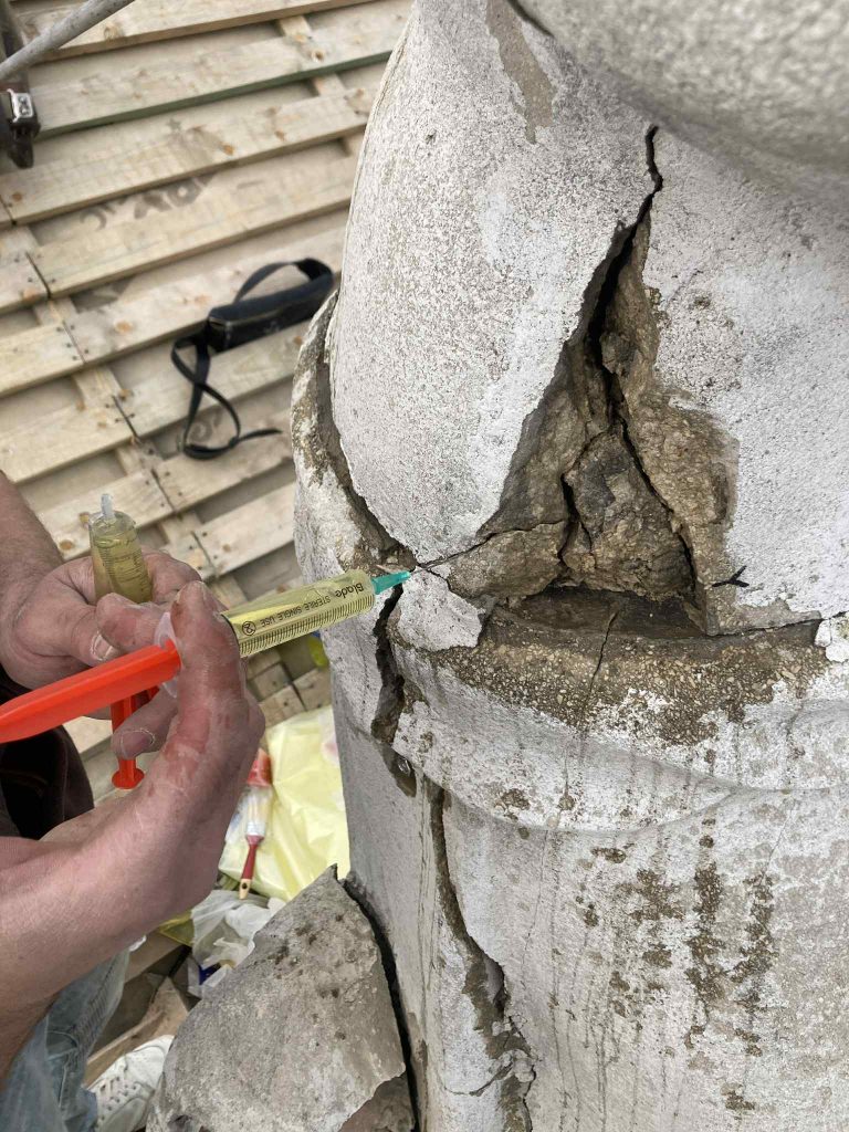 *Чистка фигуры и заполнение трещин специальной смесью.