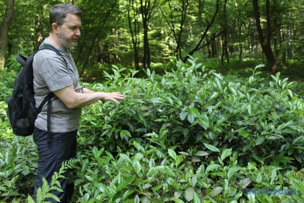Корреспондент Укрінформ встречаемся на плантации – сейчас это достаточно известная локация, здесь есть промаркированный маршрут и раз в год даже проводят тематический марафон. На людей непосвященных вау-эффекта она не производит: ну растут небольшие зеленые лиственные кусты посреди букового леса – и что? Осознать ее ценность можно только если кто тебе расскажет, в чем она заключается. Максим Малыгин для этого – идеальный кандидат. Десять лет назад он дал второе дыхание запущенному участку чайной плантации, заложенной здесь в середине ХХ в.