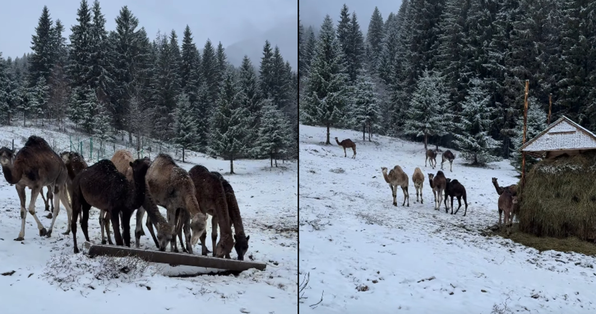 Наиболее эмоционально на зимнюю погоду отреагировали верблюды. Они осторожно ступали по белому покрову, всматривались в снежинки и, по наблюдениям работников, пытались понять, можно ли это холодное чудо с неба есть.