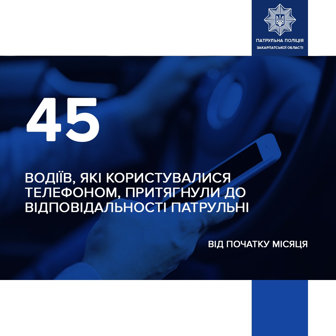 С начала месяца патрульные полицейские на Закарпатье зафиксировали 45 водителей, которые пользовались мобильными телефонами во время движения.