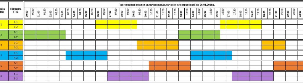 Понедельник, 26 января 2026 года, в Закарпатье начинается с ограничений электроснабжения. Из-за последствий массированных атак на энергетическую инфраструктуру, состояние системы остается сложным. НЭК «Укрэнерго» установила лимиты потребления для области, что вынуждает энергетиков применять графики почасовых отключений (ГПВ).