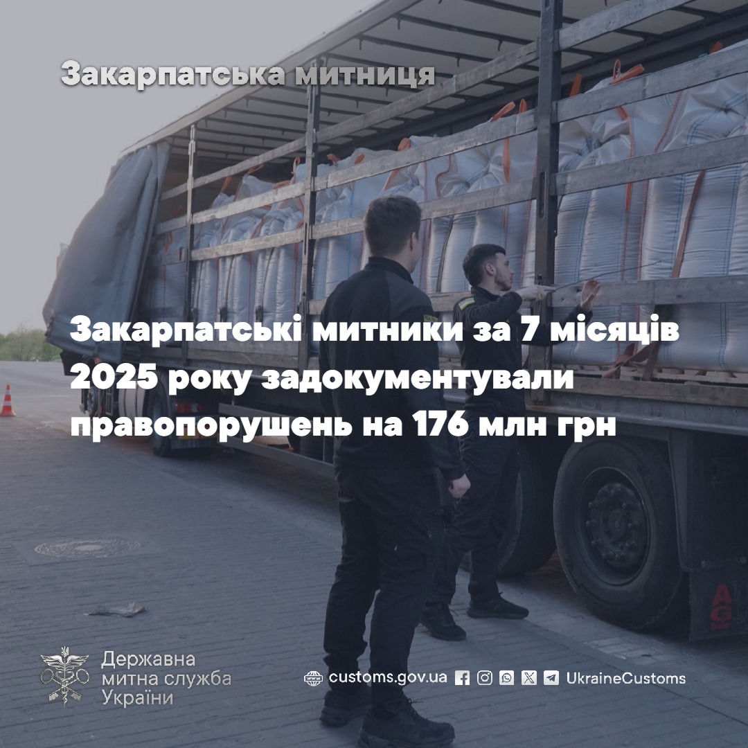 В течение семи месяцев 2025 года закарпатские таможенники зафиксировали 531 случай нарушения таможенного законодательства. Общая стоимость изъятых предметов составляет около 176 миллионов гривен, однако эта сумма может возрасти – в 15 делах оценка ещё продолжается.