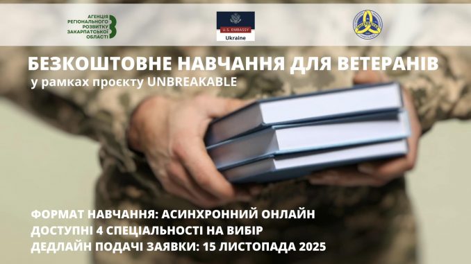 Проект реализуется в рамках инициативы «Несломленные: опыт США для образовательной реинтеграции ветеранов», которую осуществляет Агентство регионального развития Закарпатской области при поддержке Посольства США в Украине.