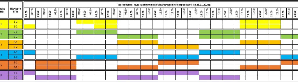 В среду, 28 января, в Закарпатье продолжают применять почасовые графики отключений электроэнергии. По распоряжению НЭК «Укрэнерго», эти меры необходимы для балансировки энергосистемы, получившей значительные повреждения в результате вражеских ударов по генерации и сетям.