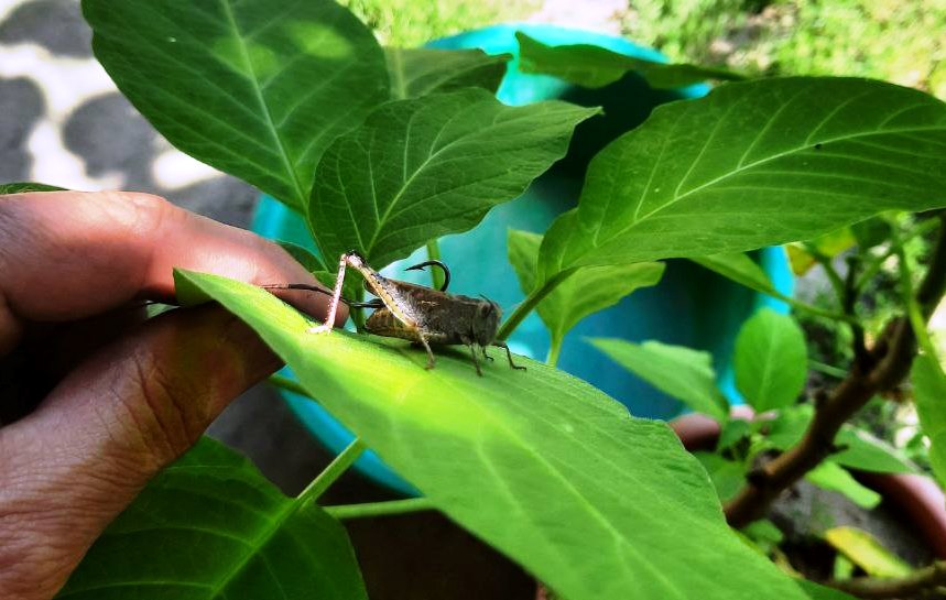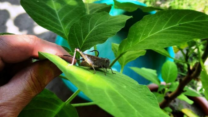 На фото и видео, сделанном в городе Виноградов, отчетливо видна взрослая особь саранчового насекомого с характерными красноватыми задними ногами. Местные жители сообщают, что подобные насекомые уже появляются в садах и огородах.