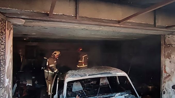 На ликвидацию пожара на площади 30 кв. м понадобился час. Огонь уничтожил гараж, автомобиль и повредил бытовое оборудование, но спасатели не допустили распространение пламени на жилые этажи дома.