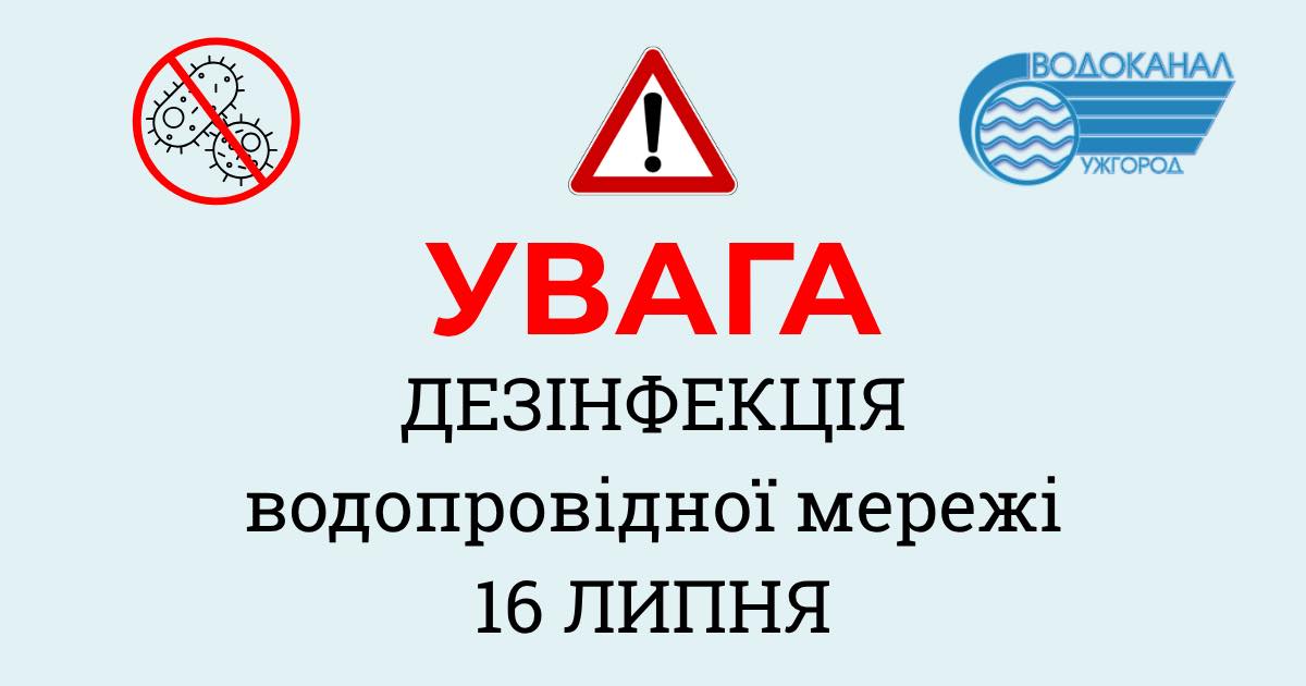 В ночь с 15 на 16 июля в Ужгороде будет проведена дезинфекция водопроводной сети. Работы запланированы на период с 00:00 до 05:00.