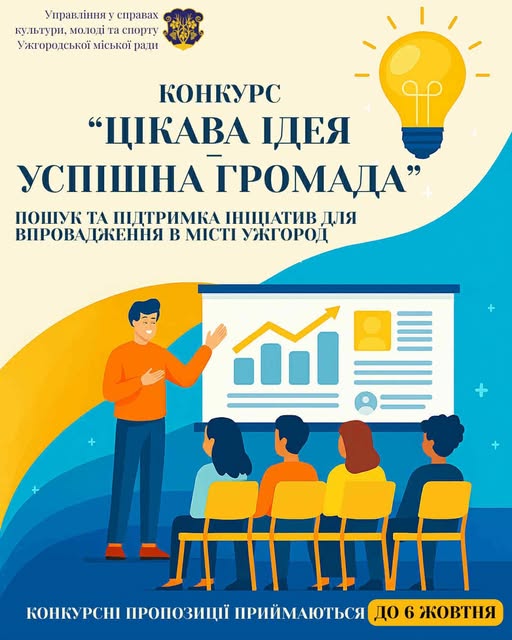 В Ужгородской городской территориальной общине начался конкурс «Интересная идея – успешная громада». Его цель – отбор молодежных программ, инициатив и проектов для воплощения на уровне громады.