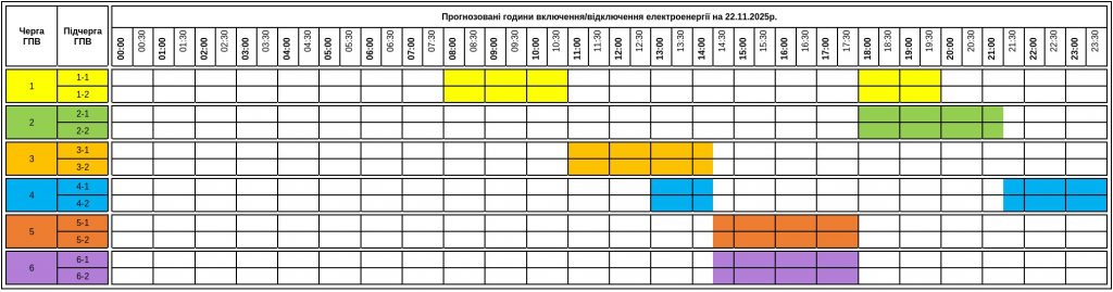 ЧАО «Закарпатьеоблэнерго» информирует потребителей о необходимости применения графиков почасовых включений/отключений электроэнергии на субботу, 22 ноября 2025 года.