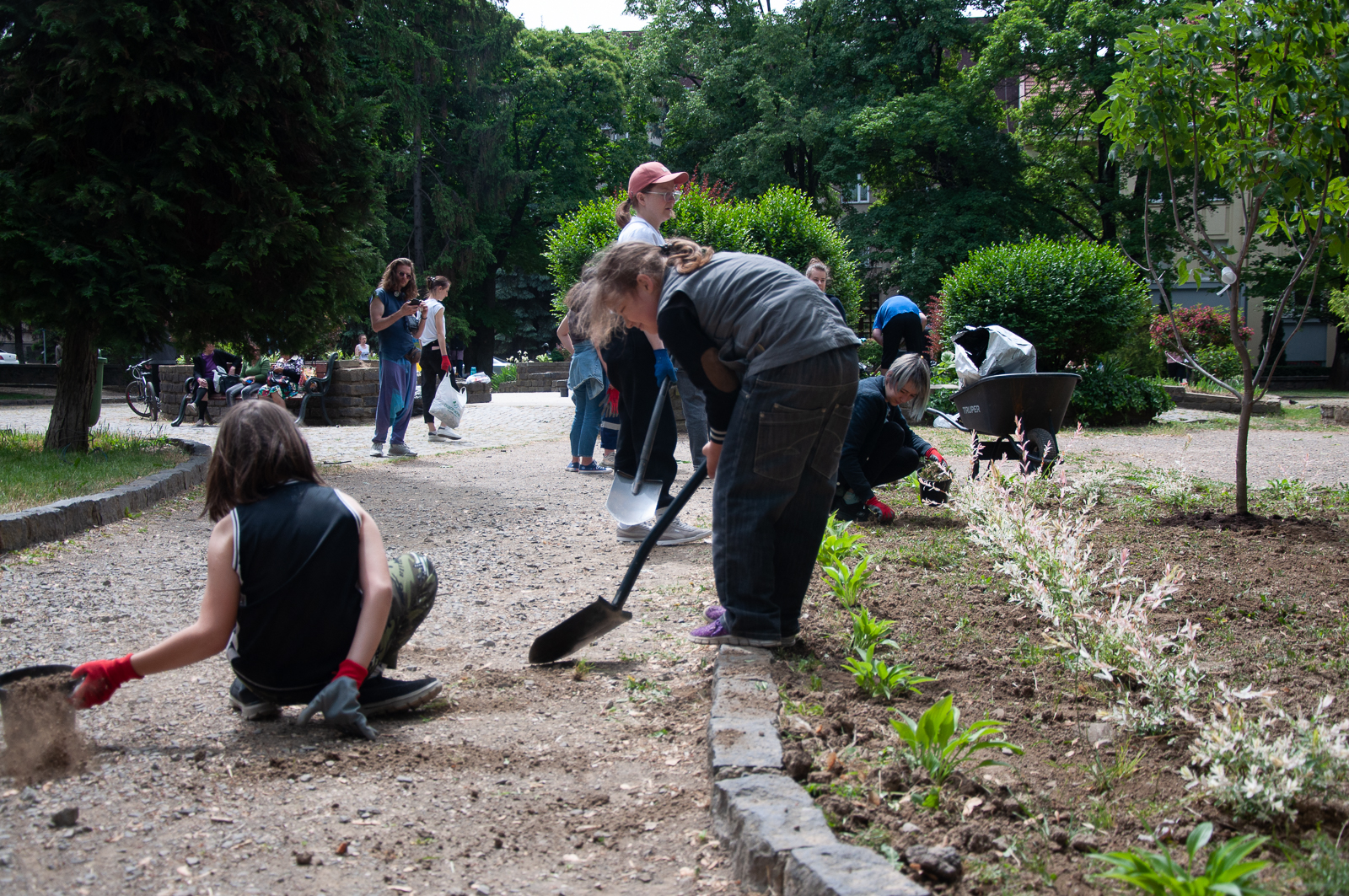 Учасники взялися за благоустрій цієї зеленої зони – прибрали сміття, розчистили від бур’янів клумби, висадили чимало квітів, підрізали кущі, відремонтували лавиці тощо.