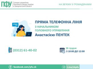 У п’ятницю, 26 грудня, з 10:00 до 12:00 у Головному управлінні Пенсійного фонду України в Закарпатській області працюватиме «пряма» телефонна лінія. На запитання громадян відповідатиме […]