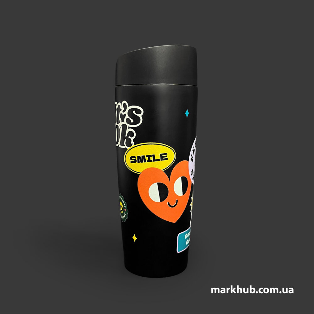 Ця технологія дозволяє наносити зображення безпосередньо на поверхню термочашки за допомогою ультрафіолетового затвердіння фарб. Переваги методу – насичені кольори, можливість відтворювати дрібні деталі та широкий вибір відтінків. УФ-друк стійкий до механічних впливів, а малюнок не вигоряє на сонці.