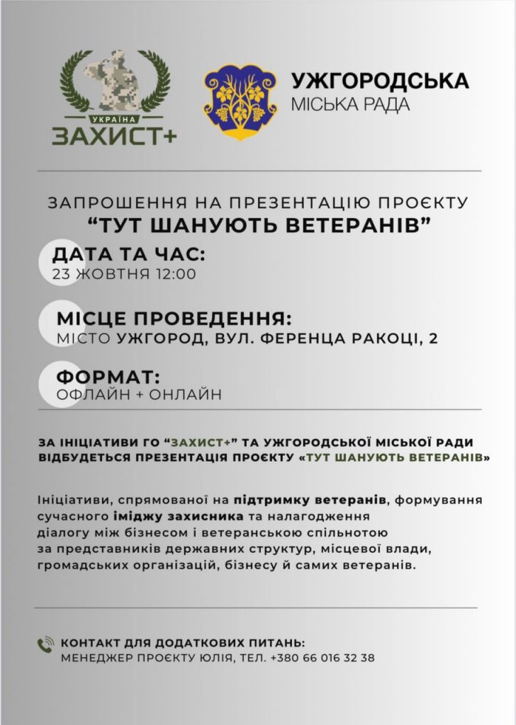 В Ужгороді відбудеться презентація національного проєкту «Тут шанують ветеранів», який має на меті формування нової культури поваги та вдячності до захисників.
