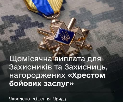 Розмір допомоги нагородженим «Хрестом бойових заслуг» становитиме 1,5 мінімальної заробітної плати станом на 1 січня відповідного року. На сьогодні це — 12 000 грн щомісяця.