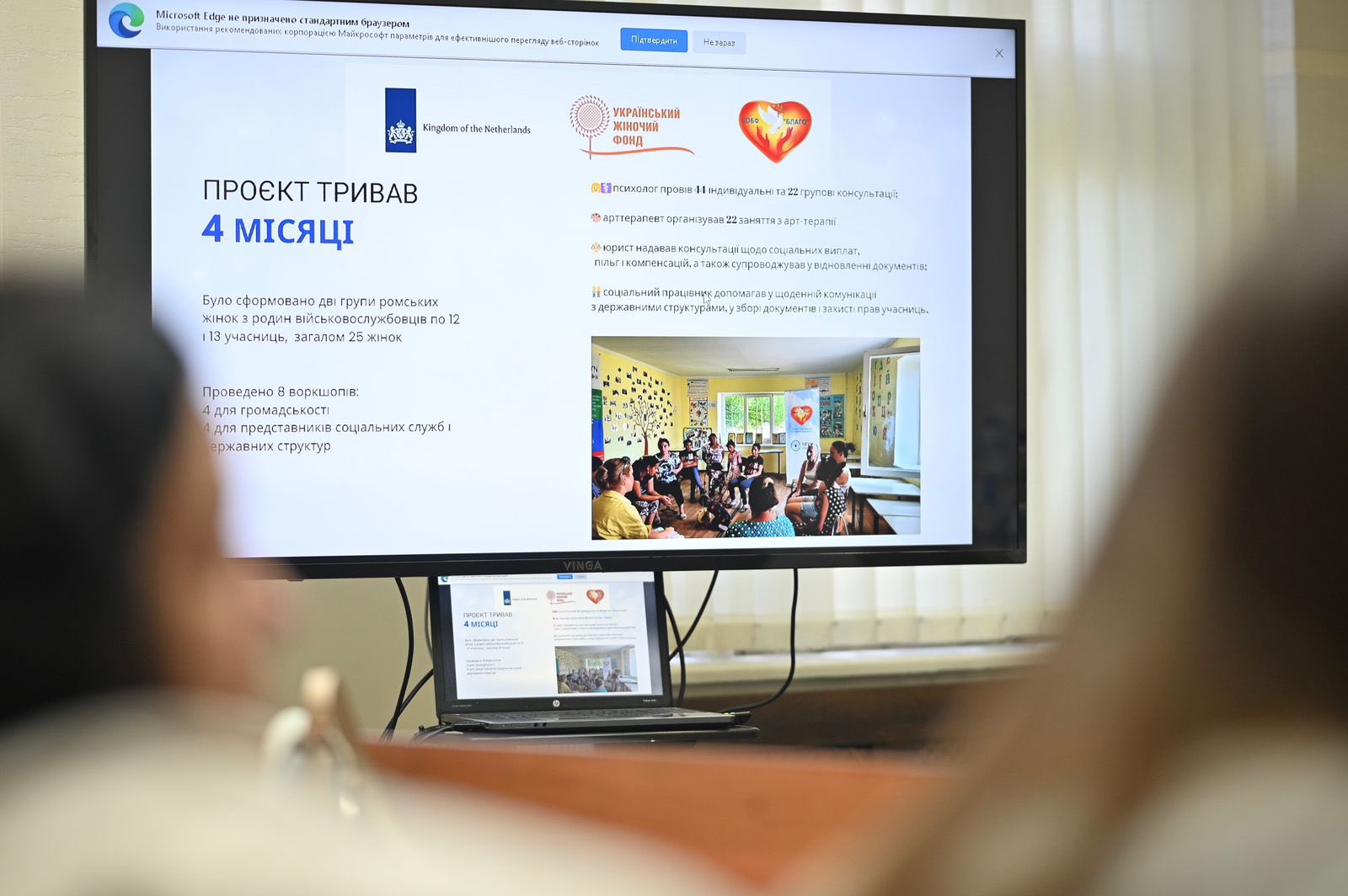 Директорка фонду Елеонора Кулчар зазначила, що, крім допомоги з документами та послугами, вдалося створити простір, де жінки могли отримати психологічну підтримку. На заході Маріанна Колодій, керівниця секретаріату Коаліції 1325-Закарпаття, розповіла про людиноорієнтований підхід у роботі з вразливими групами.