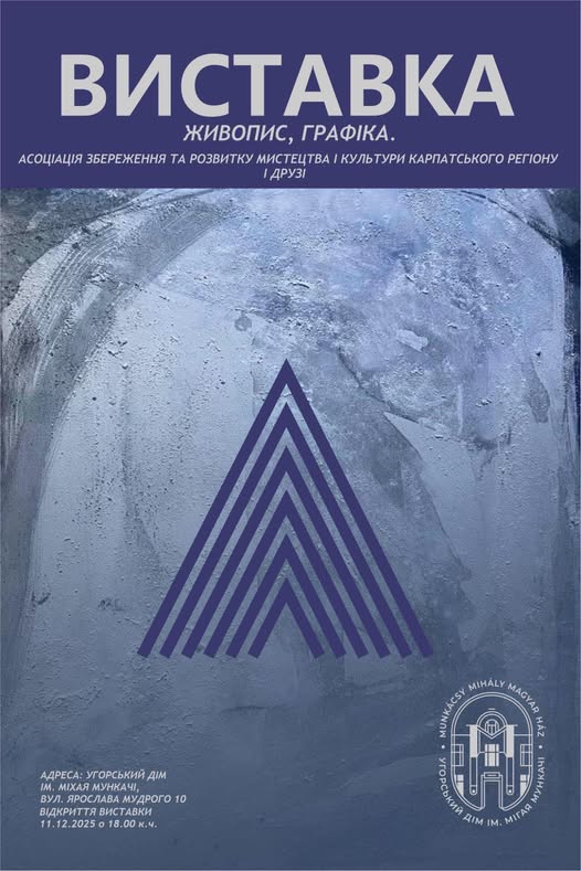 Угорський Дім ім. Мігая Мункачі та Асоціація збереження та розвитку мистецтва і культури Карпатського регіону (АЗРКМККР) щиро запрошують усіх шанувальників мистецтва на відкриття виставки живопису та графіки під назвою «АЗРКМККР та друзі».
