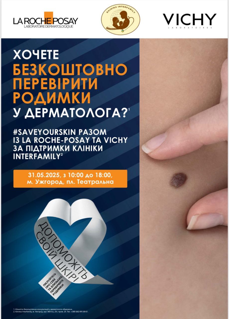 У суботу, 31 травня, мешканці та гості Ужгорода зможуть безкоштовно перевірити родимки у кваліфікованих дерматологів клініки «Інтерфемілі».