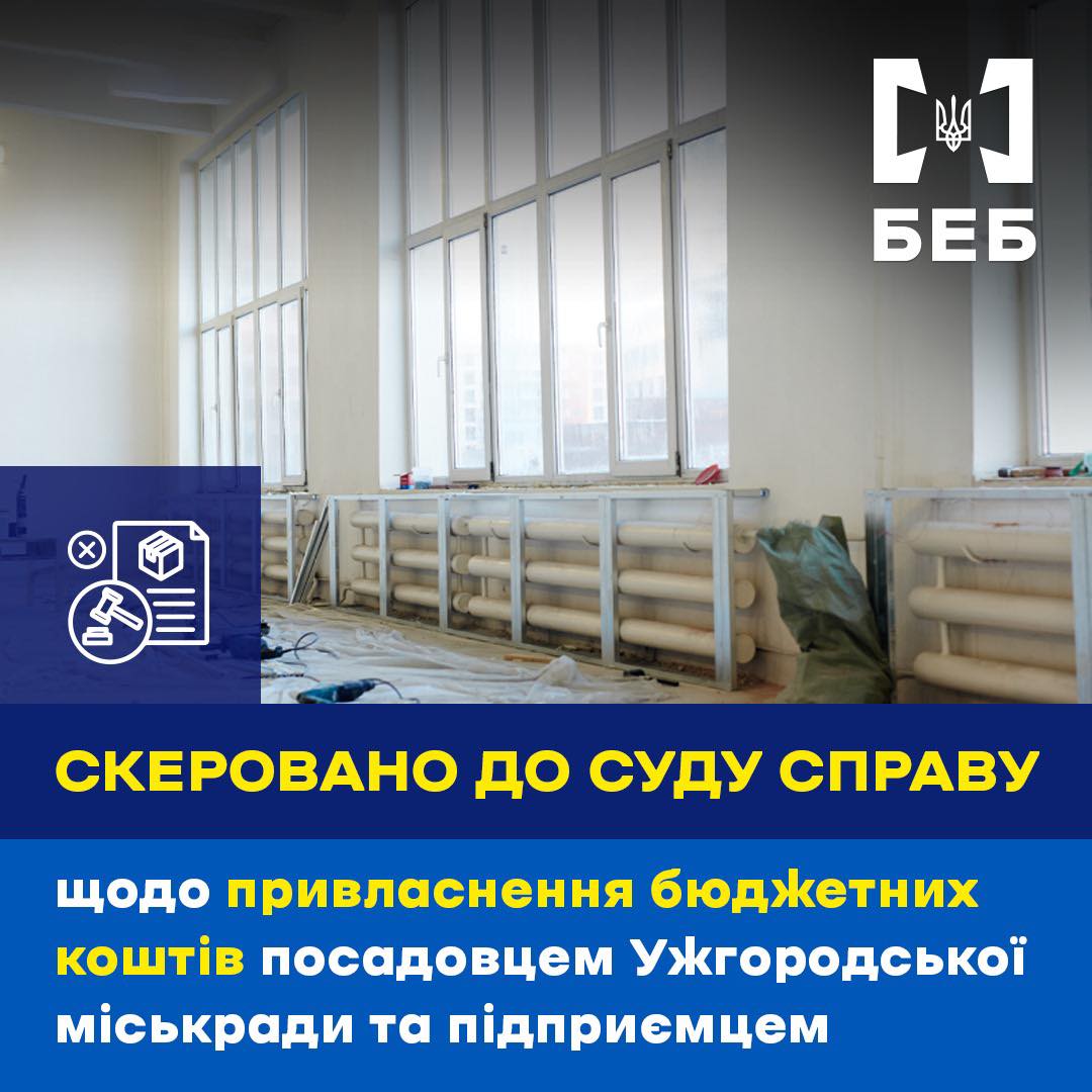 Детективи Бюро економічної безпеки у Закарпатській області завершили досудове розслідування у справі про привласнення коштів під час ремонту систем опалення у закладах освіти Ужгорода.