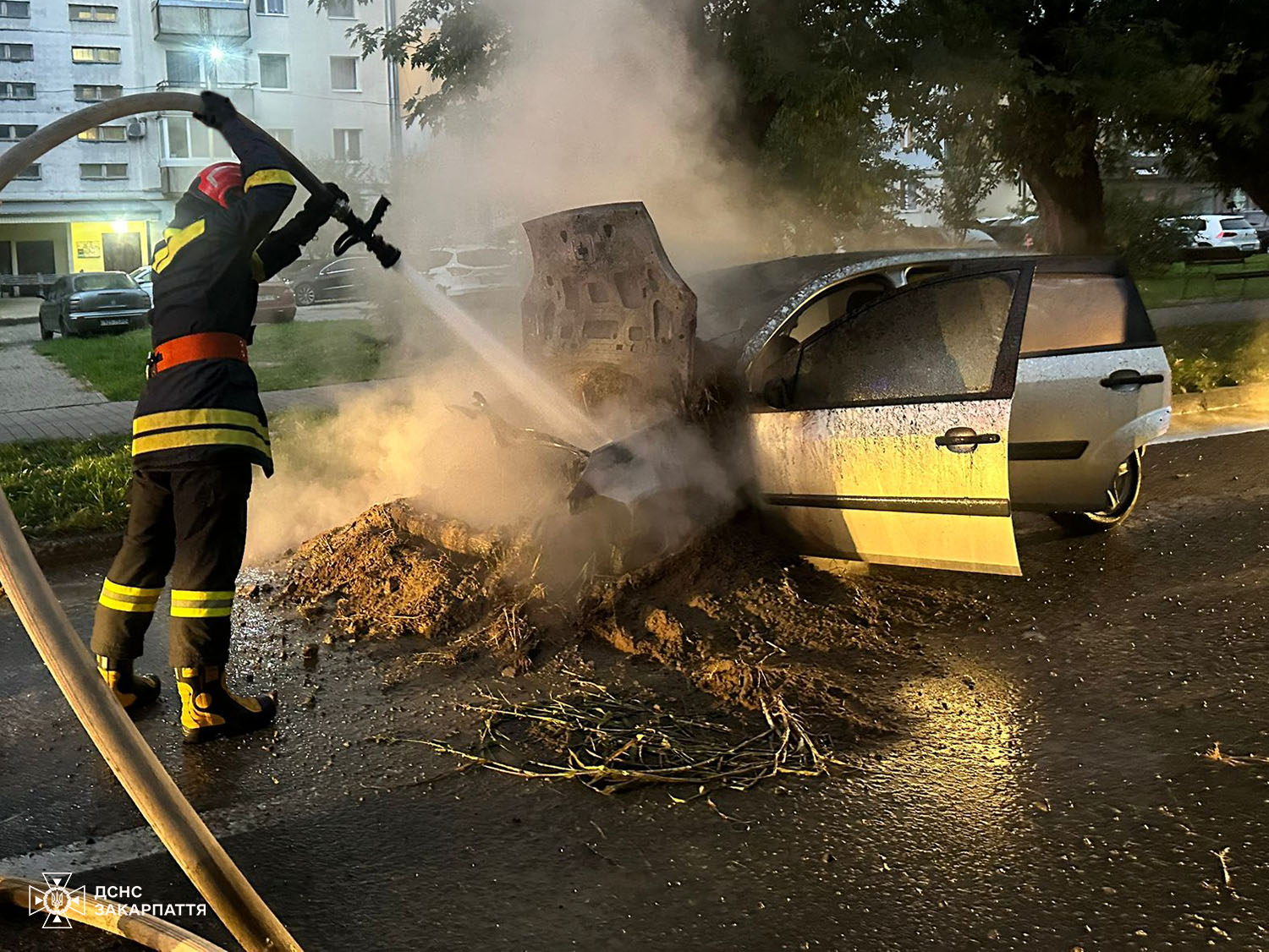 Сьогодні вранці в Ужгороді на вулиці Капушанській під час руху загорівся легковий автомобіль Ford Fiesta. Водій безуспішно намагався самостійно загасити вогонь, оскільки не зміг відкрити капот.