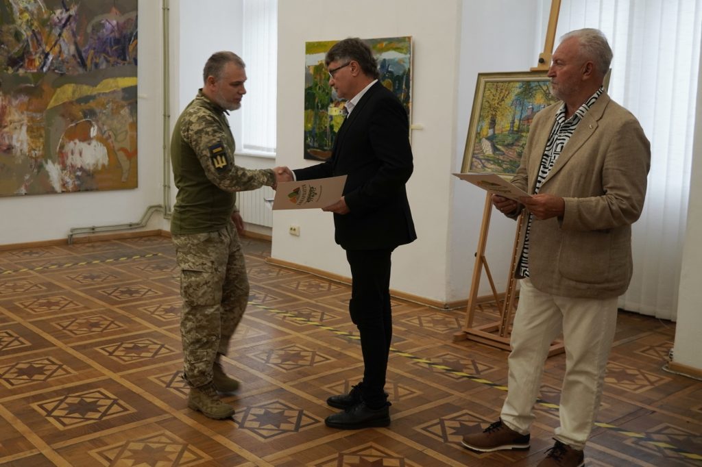 У цей же день у музеї відкрилася ще одна масштабна експозиція — «Мистецтво, що живе всупереч війні і наближає Перемогу». Її створювали протягом кількох місяців співробітники музею, збираючи твори військових-художників та їхніх побратимів.