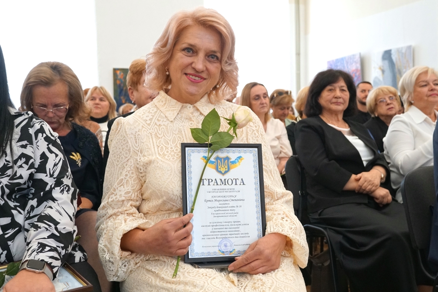 Грамоти Ужгородської міської ради керівникам шкіл, дитсадків, вчителям та вихователям вручили міський голова Богдан Андріїв та заступниця міського голови Наталія Баранюк. Подяки Закарпатської обласної ради вручив Роман Сарай.
