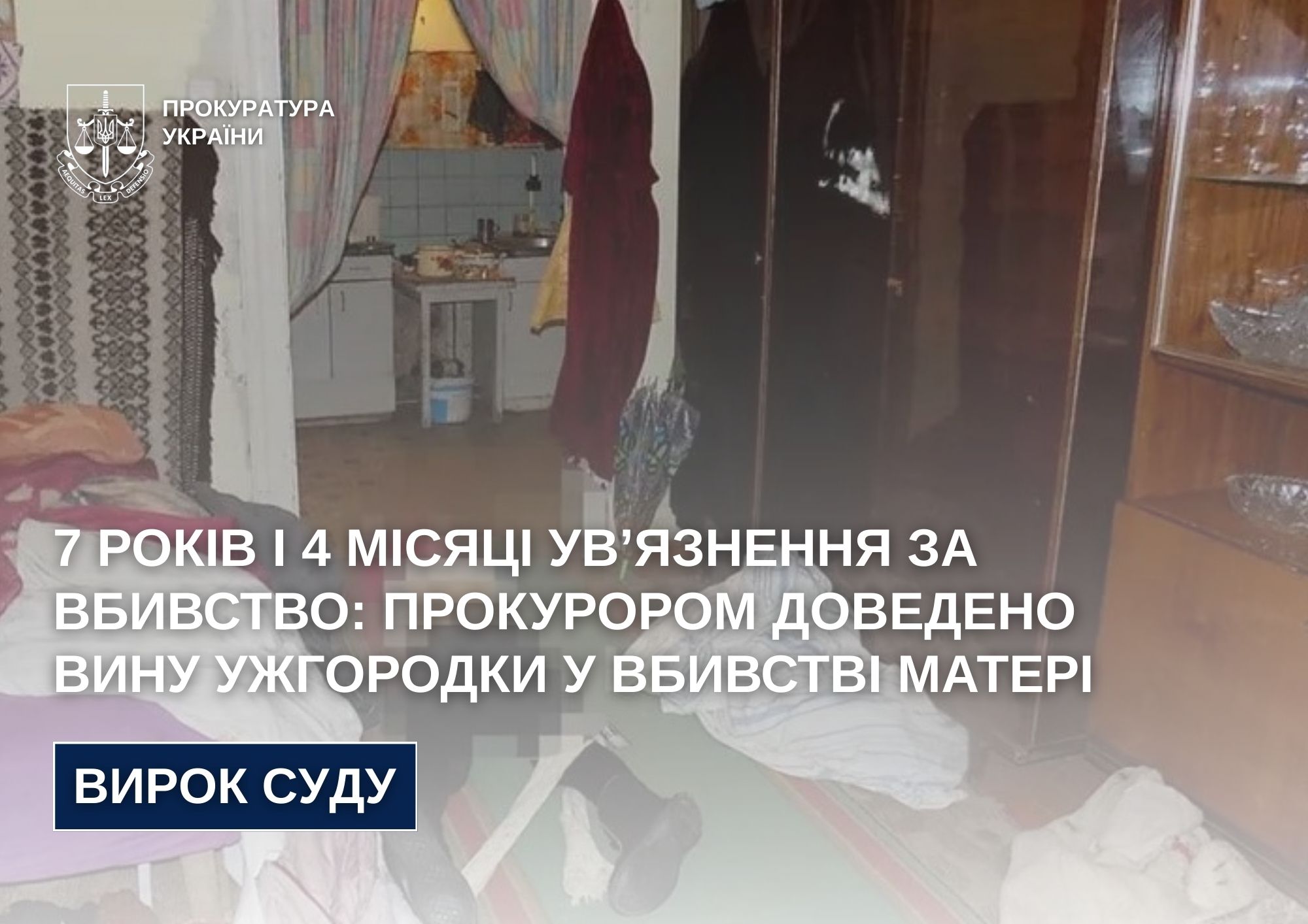 Суд визнав винною ужгородку у вбивстві власної матері, засудивши її до 7 років і 4 місяців ув’язнення. Рішення першої інстанції було підтверджено Закарпатським апеляційним судом.