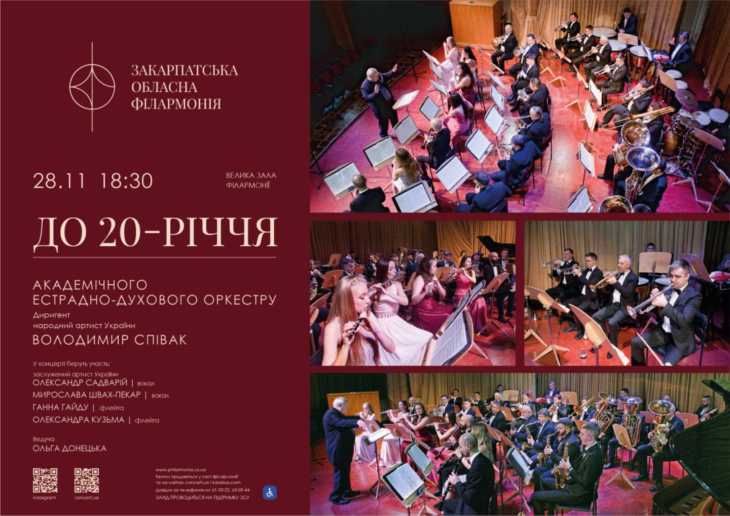 Академічний естрадно-духовий оркестр Закарпатської обласної філармонії відзначає значну дату — 20-річчя з дня заснування. З цієї нагоди артисти запрошують усіх шанувальників музики розділити з ними урочисту подію.