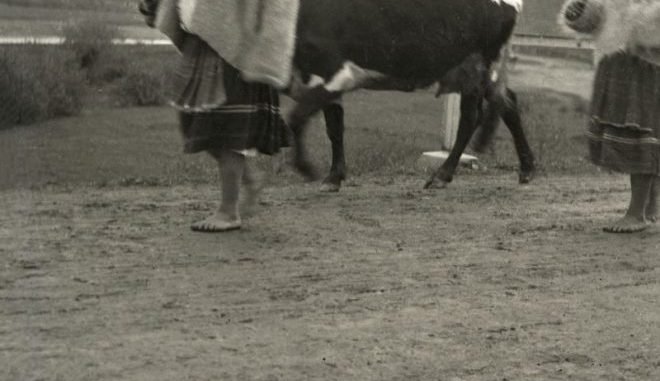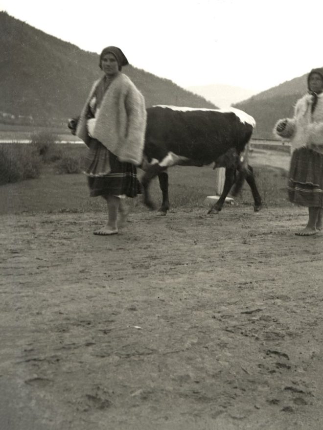 Жінки з коровою на Ужанській Верховині, 1930 ті роки. Фото Андрія Коцки.