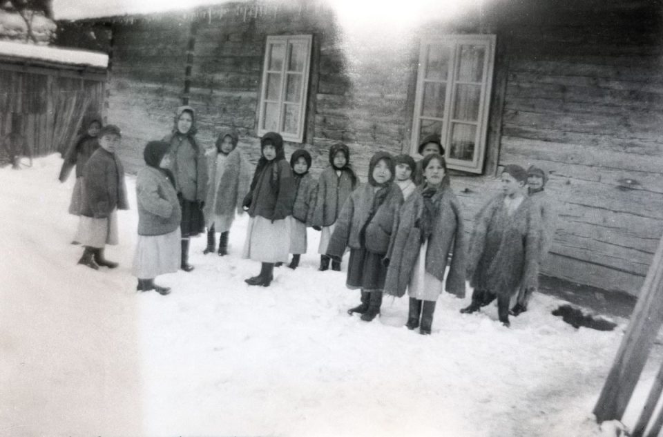 Діти біля школи на Ужанській Верховині, 1930-ті роки. Фото Андрія Коцки.